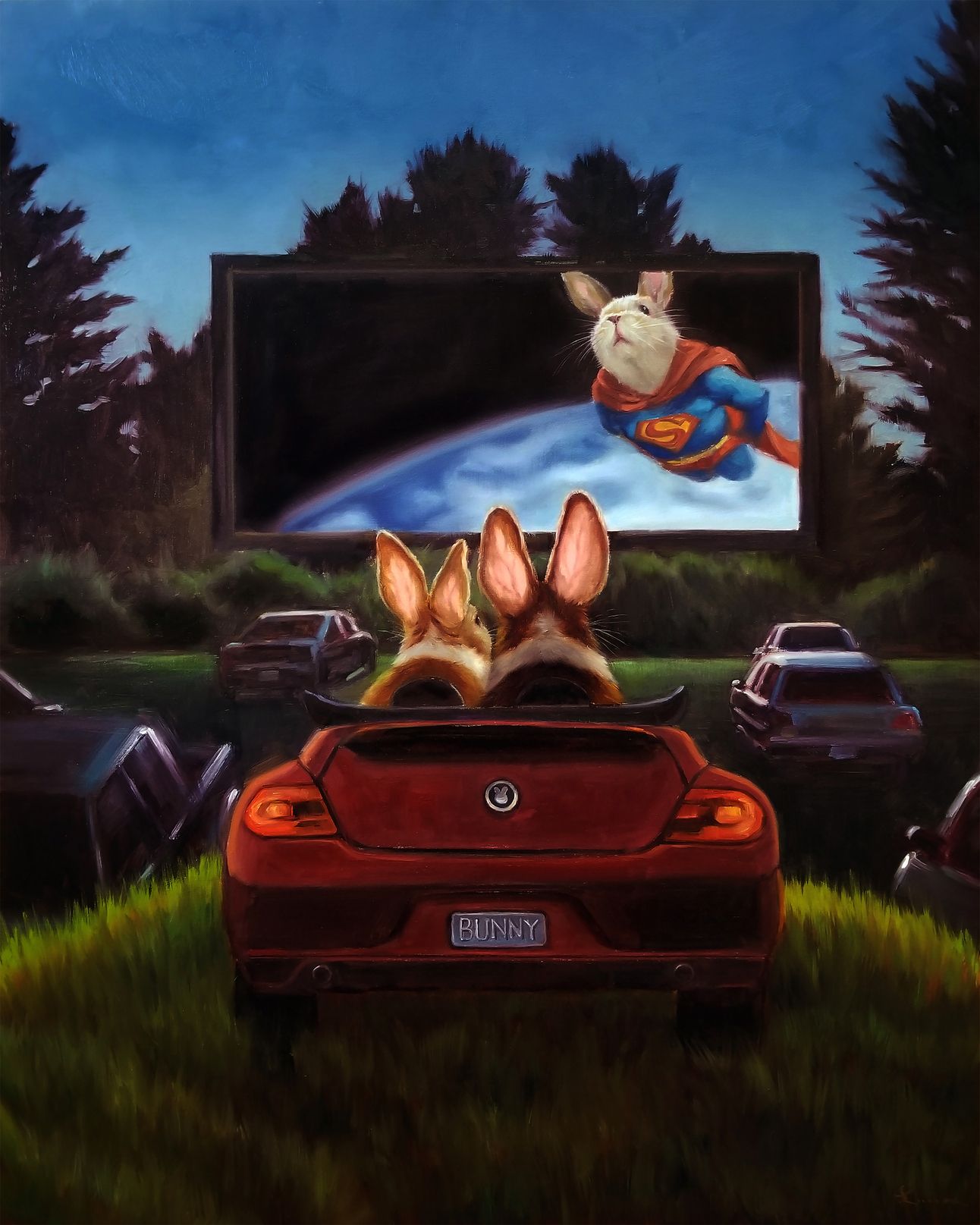 And here’s a sweet combination of three of my favorite things: sports cars, movies and transparent bunny ears: